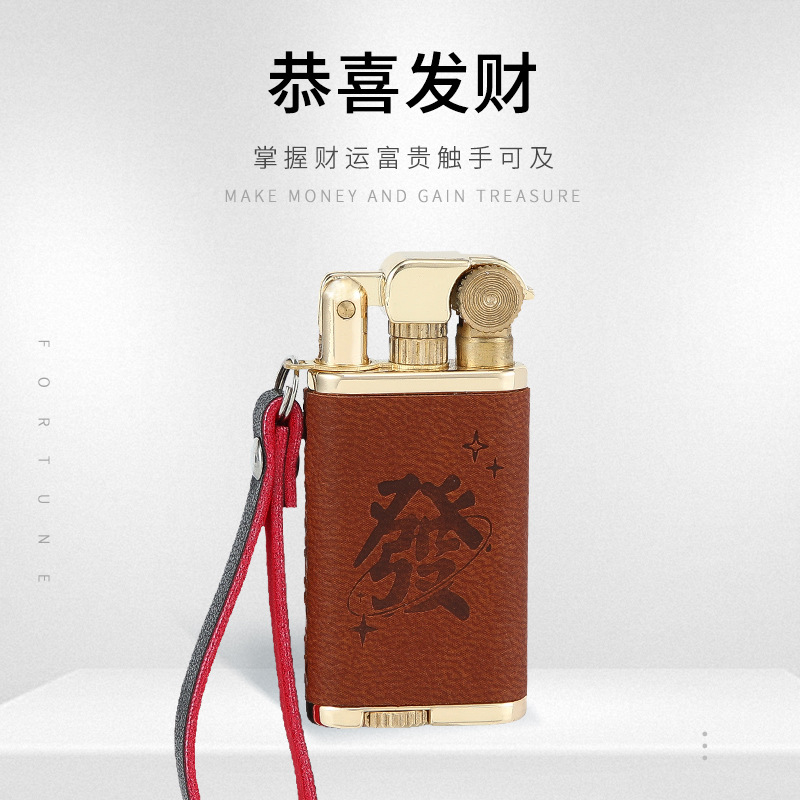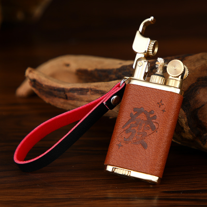 首領新型ミニ砥石灯油ライター小型携帯革紐タイプ男性高級ギフトライター