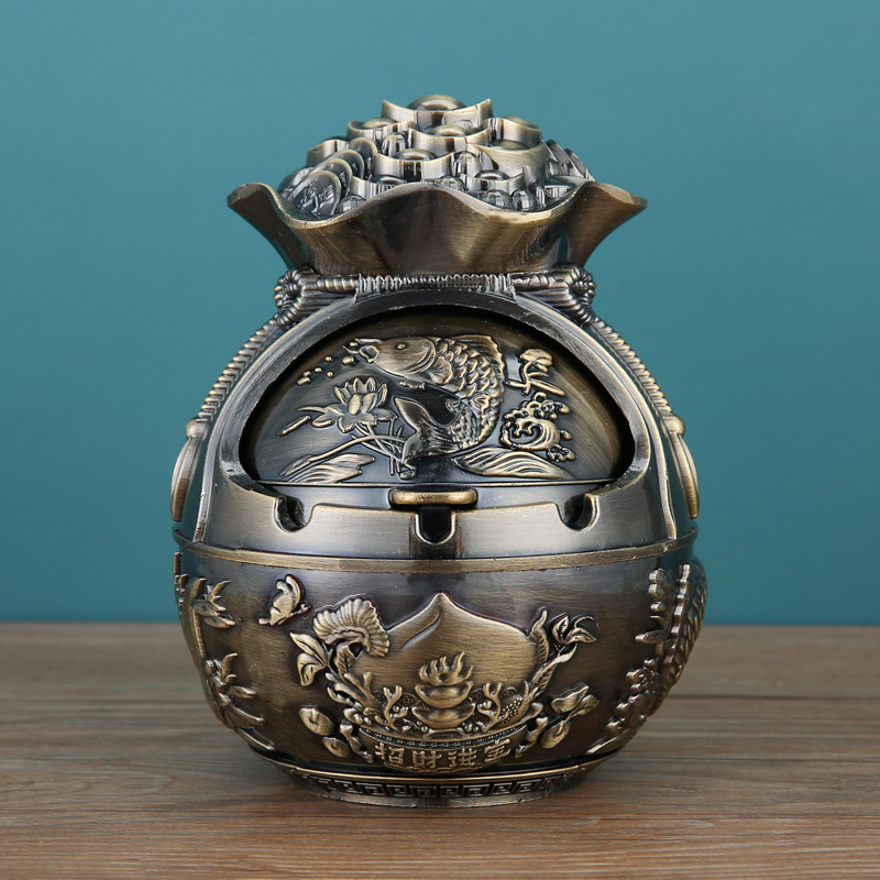 メーカー卸売り黄銅製コイは灰皿銅製灰皿蓋付き灰皿浮き彫りプレゼント