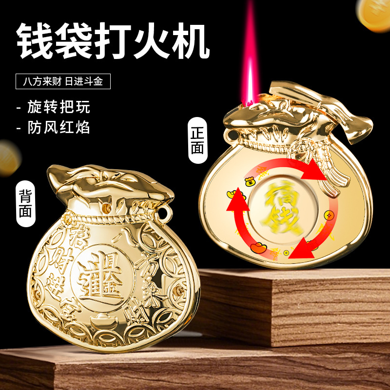 日進斗金銭袋ライター防風直沖創意個性紅炎新年に男女友達プレゼント