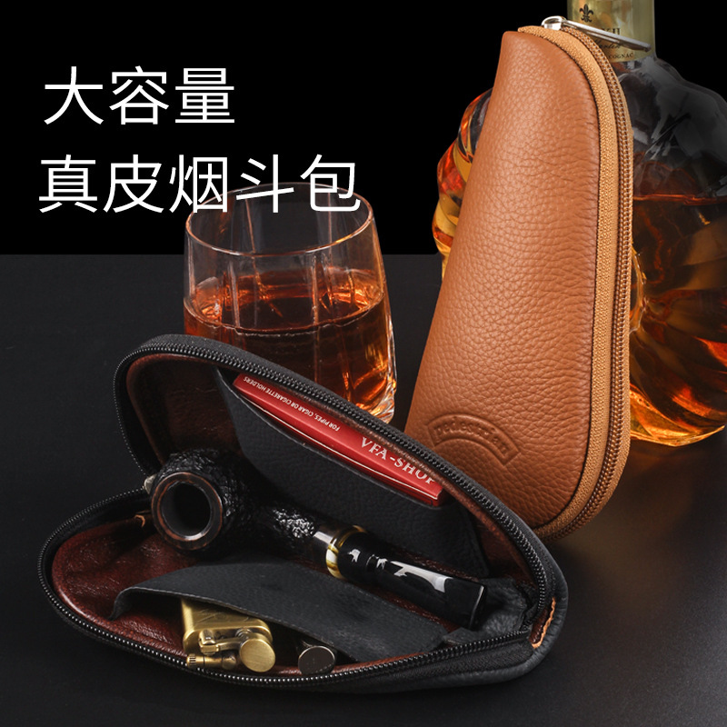 レトロ牛革三角パイプバッグ男性携帯大容量タバコアクセサリーバッグ個性単位パイプバッグ