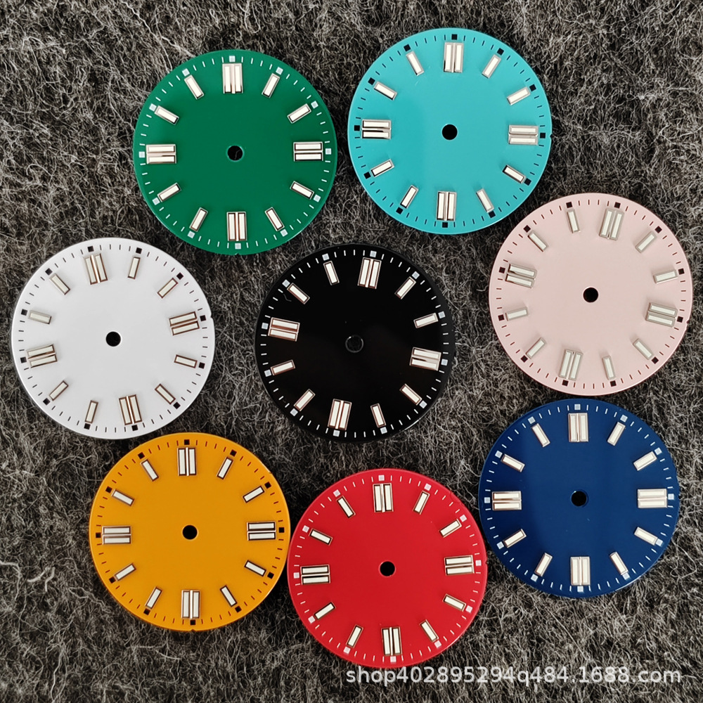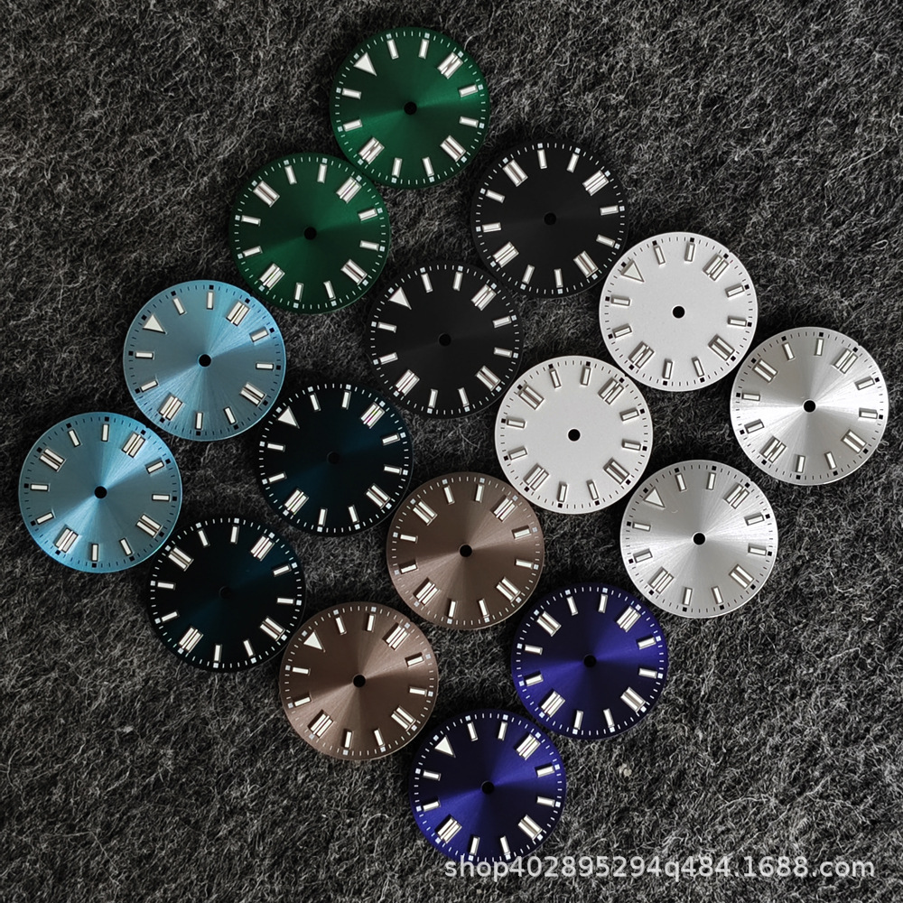 腕時計の部品はなしで28.5mmの文字板の分線は緑の夜光があります。
