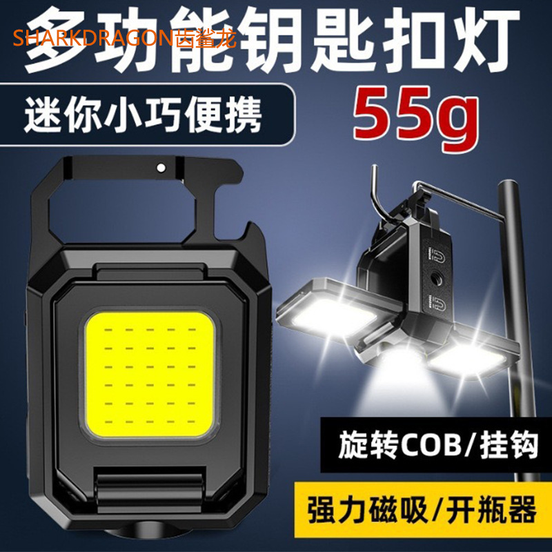 クロスボーダー新型多機能キーホルダーライトUSB充電ポータブルミニLEDキャンプライト磁気吸引ライト