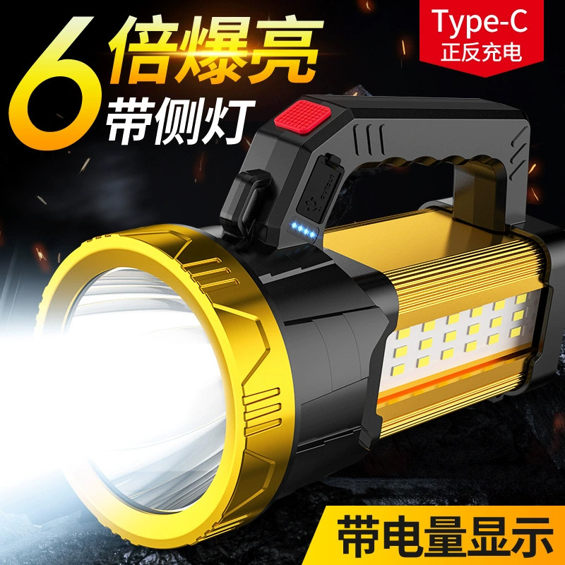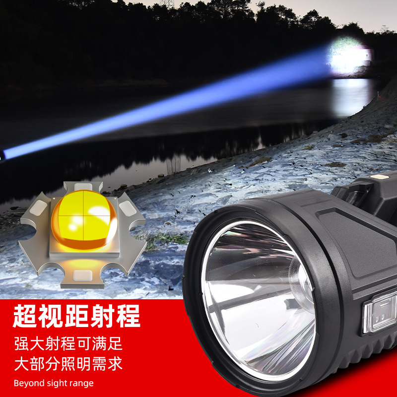 クロスボーダー懐中電灯強光充電式アウトドア超亮遠射手提げ式探照大容量リチウム電池工鉱灯