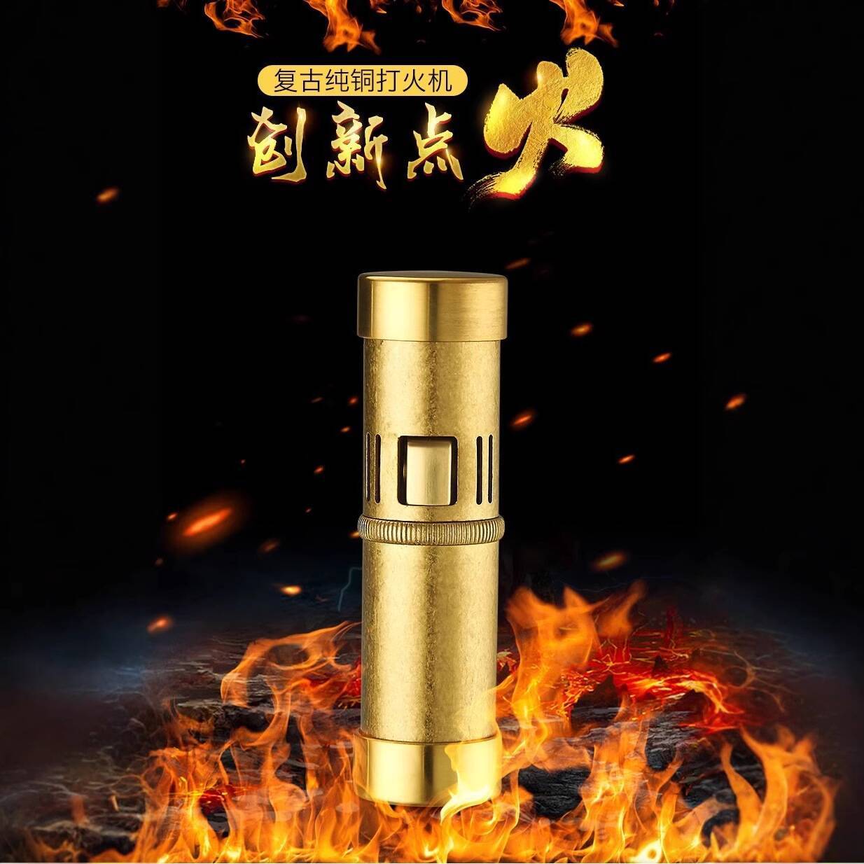 レトロな手作り砥石金柱純銅灯油ライターパーソナライズされたプッシュ式クリエイティブミニコンパクトポータブル卸売