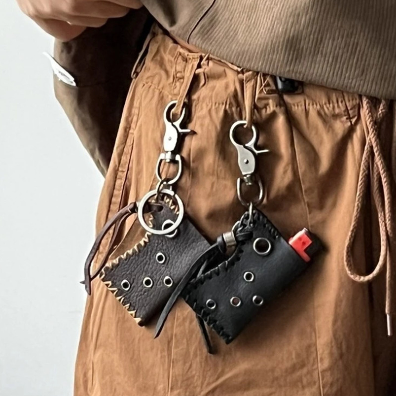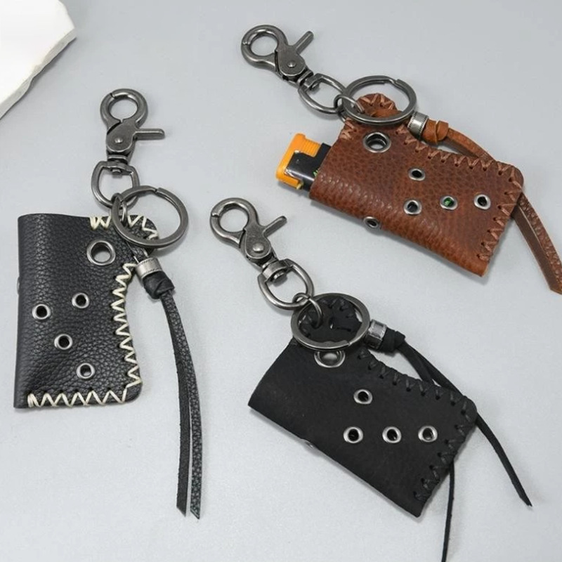 クロスボーダーキーホルダーペンダントアウトドアキャンプポータブルイグナイターレザーケースパンクスタイルPUレザーライターレザーケース