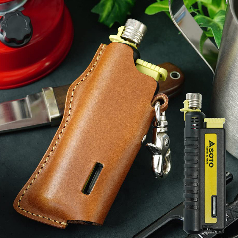 アウトドアガストーチボックス保護カバー革キャンプ点火器革カバーライター収納カバーキーホルダー付き