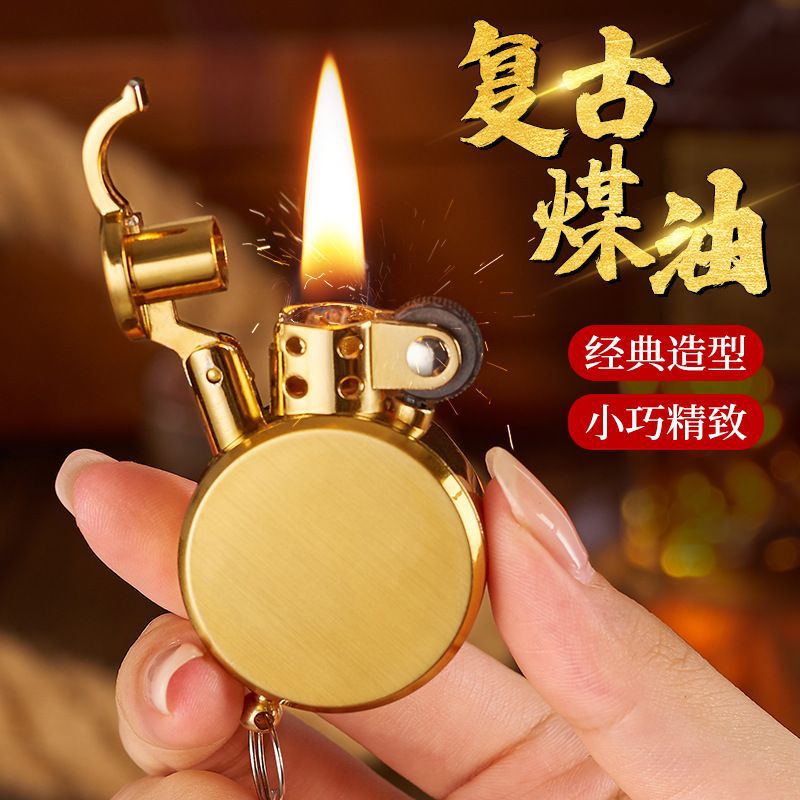 ミニ小型ポータブル灯油砥石ライター防風金属レトロ男性誕生日プレゼント