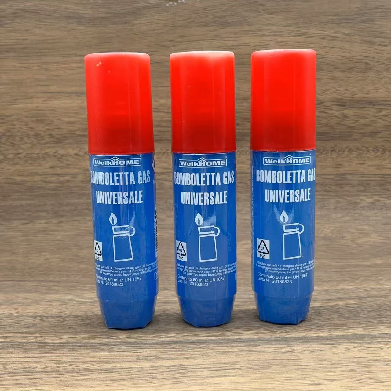現物はプラスチックの口の小さい瓶に火機のブタンのガスの60mlのライターの通用のガスの空気入れの瓶を供給します。