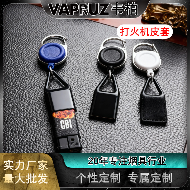クロスボーダーライターケースキーホルダーレザーケース格納式ライターUSBベルトケーブルクリップ付きライターホルダー