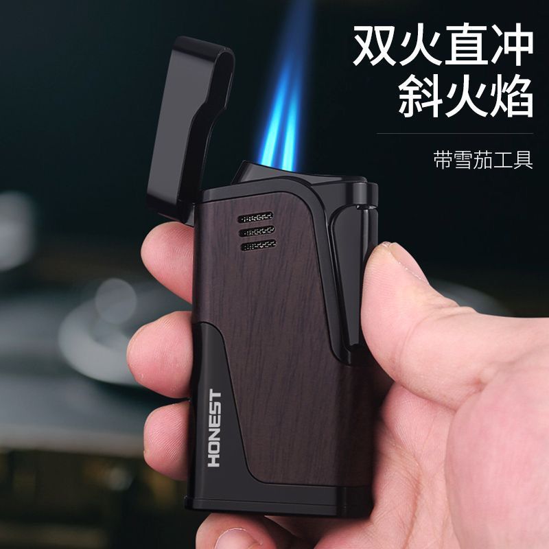 ホネ百誠の正規品の空気入れ防風ライターのダブルストレート金属の火機とシガー穴の煙具のプレゼント