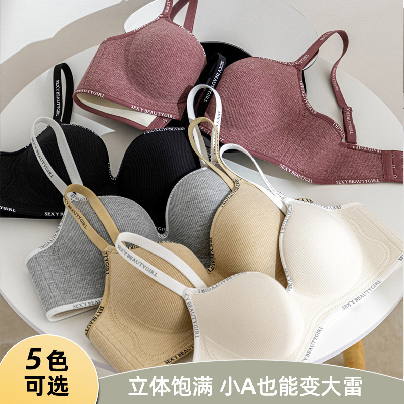 2024無痕シンプル前ボタン無背ボタン下着小胸集性感美背快適ブラジャー