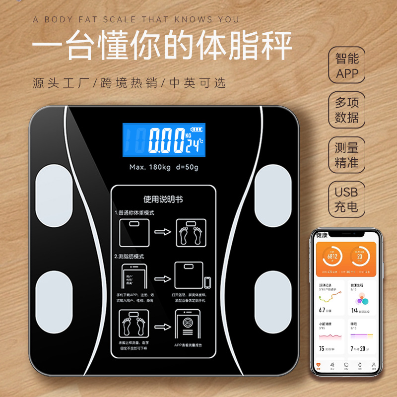 国境を越えた人体電子スケール家庭用スマート寮健康体脂肪スケール充電式電子スケールメーカー体重計卸売