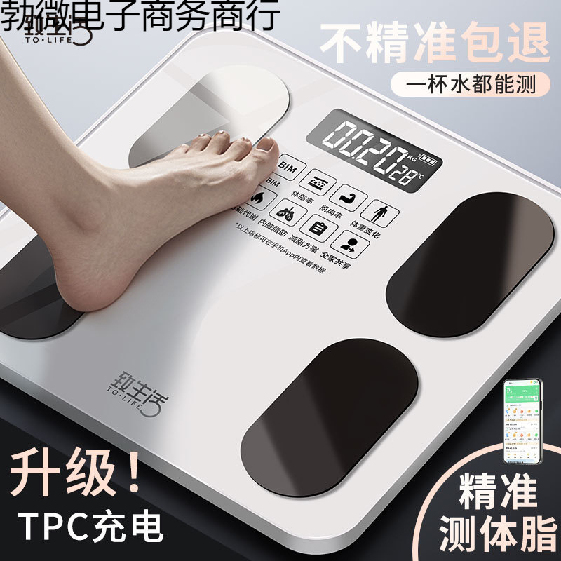 インテリジェント体脂肪計、高精度家庭用正確な充電体重計、電子体重計、寮女子脂肪減少計