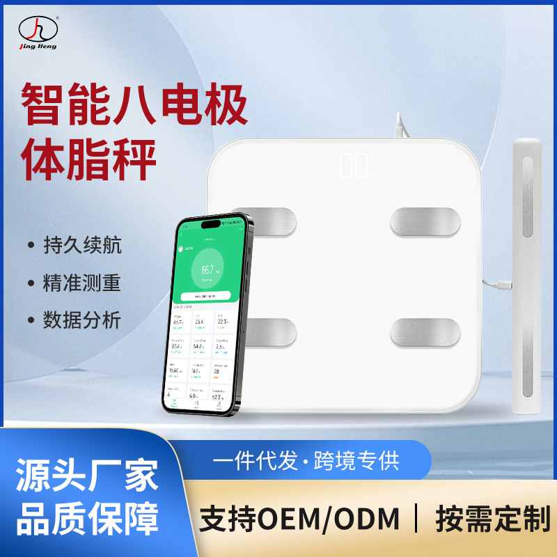 工場在庫スマート 8 電極体脂肪計シンプルなスタイルの携帯電話制御強化ガラス正確な測定体重計