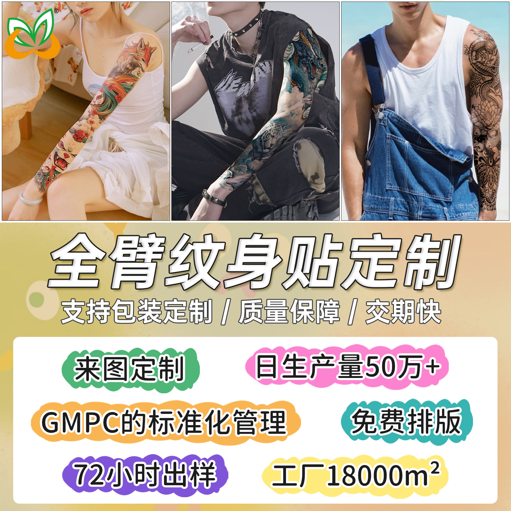 ソースメーカー卸売カスタマイズされたタトゥーステッカー大人のフルアームフラワーアームカラー印刷グリッター発光防水汗タトゥーステッカー