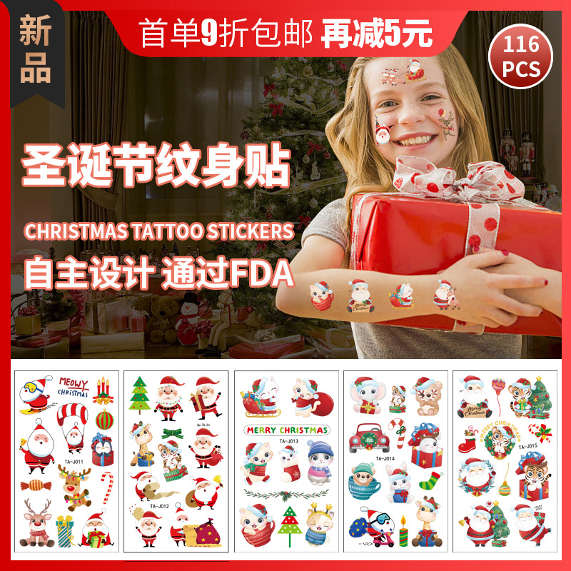 2022新しいクリスマス入れ墨ステッカー防水汗子供漫画顔ヘラジカ使い捨て臨時ボディステッカー