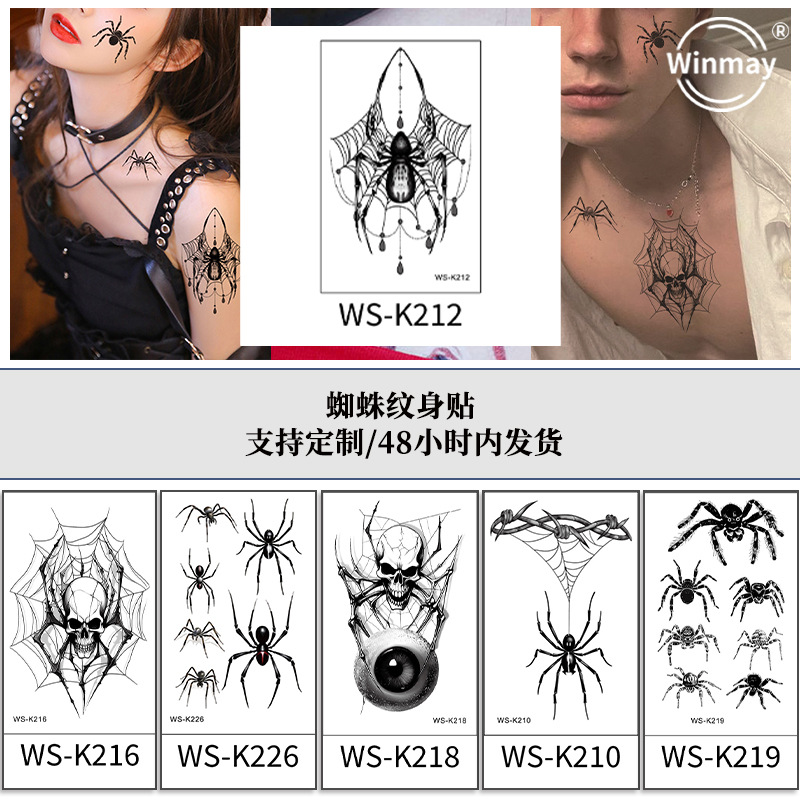 国境を越えた新型卸売り防水汗シミュレーション立体スパイダータトゥーシール蜘蛛網ハロウィーンタトゥーシール