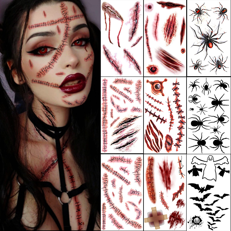 クロスボーダー新しいハロウィンカラフルなメイクアップフェイスステッカーハロウィンホリデーパーティーショー一時的なフェイシャルタトゥーステッカー