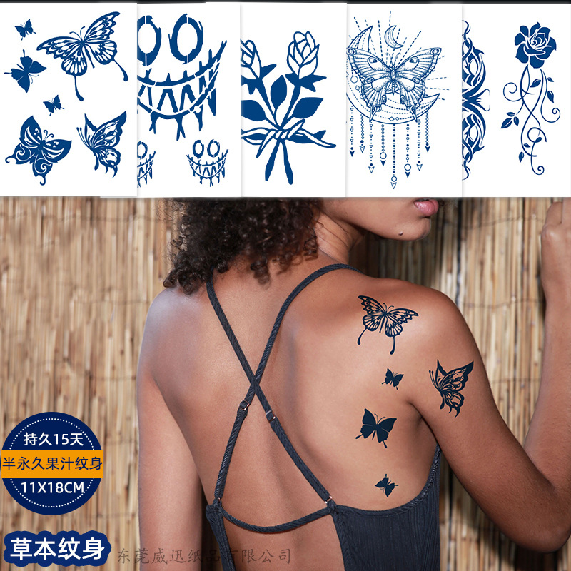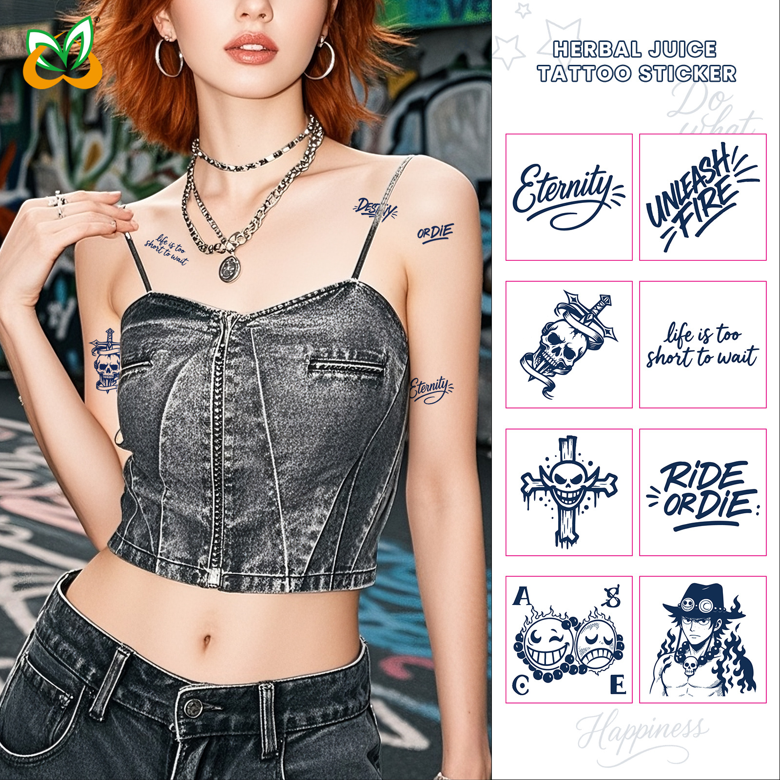 新しい防水ハーブジュースタトゥーステッカー、クールでトレンディーな男性と女性のジュース半永久的な長持ちする色の写真ステッカー
