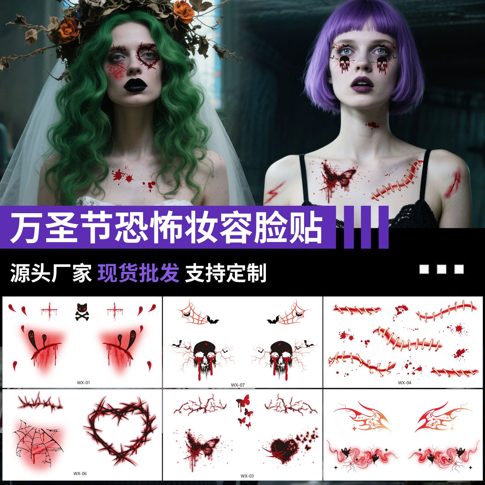 2025 新しいハロウィンひび割れフェイスステッカータトゥー黒ホラー化粧面白い防水タトゥーステッカー