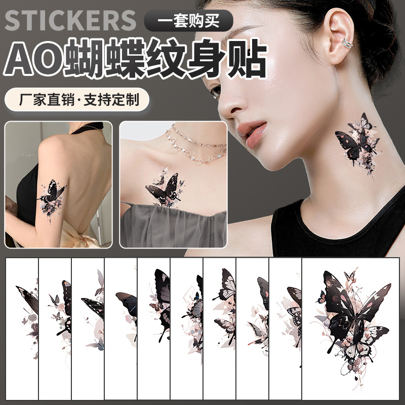 カラーの紋章は防水の女性の持続的な蝶の仙気のクールな颯爽の高級感の2024新型のシミュレーションの鎖骨のシールの女性を貼ります。