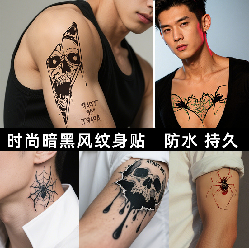 国境を越えた新しいハロウィンタトゥーステッカー防水性と耐汗性模擬スパイダースカル一時的なタトゥーステッカーパーティーショー