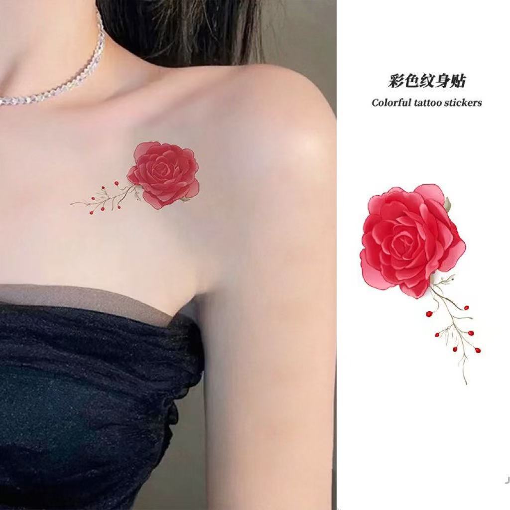 セクシーなバラの花の人気のタトゥーステッカー、鎖骨と足首の女の子用、美しく、新鮮で、防水性があり、傷跡をカバーするのに長持ちします。