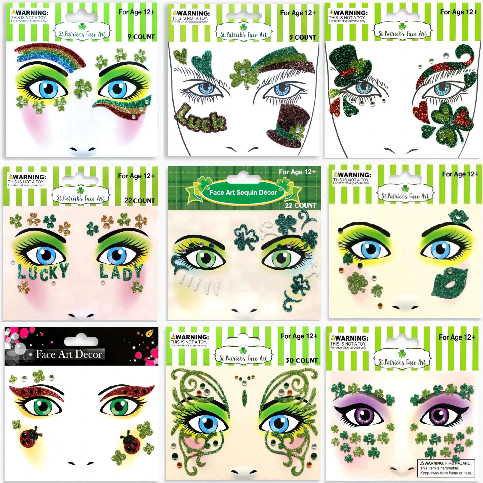 クローバー祭りパーティーキラキラピンクピンクダイヤモンドかわいい顔ステッカー聖パトリック祭りパーティー顔玉葱ペースト