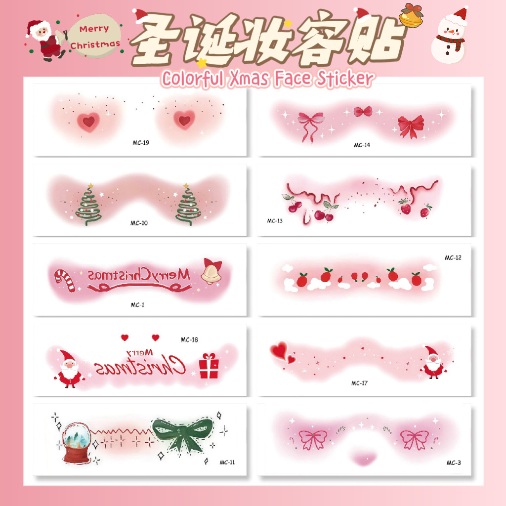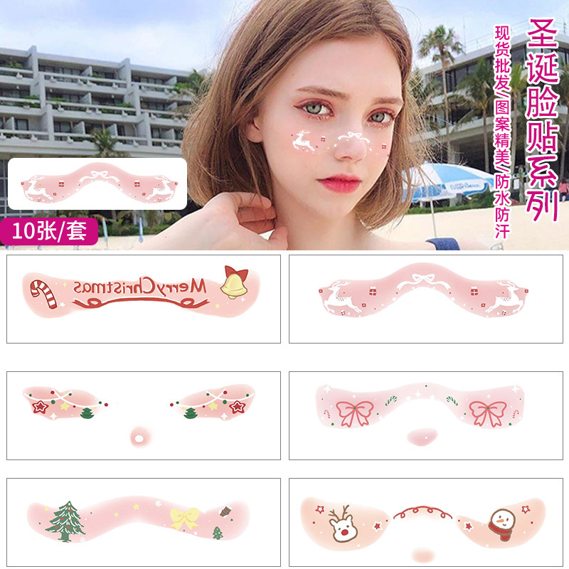 クリスマスの定番メイクアップステッカー、ホリデーパーティーやコンサートにぴったりの可愛いフェイスステッカー、防水で長持ちするタトゥーステッカー
