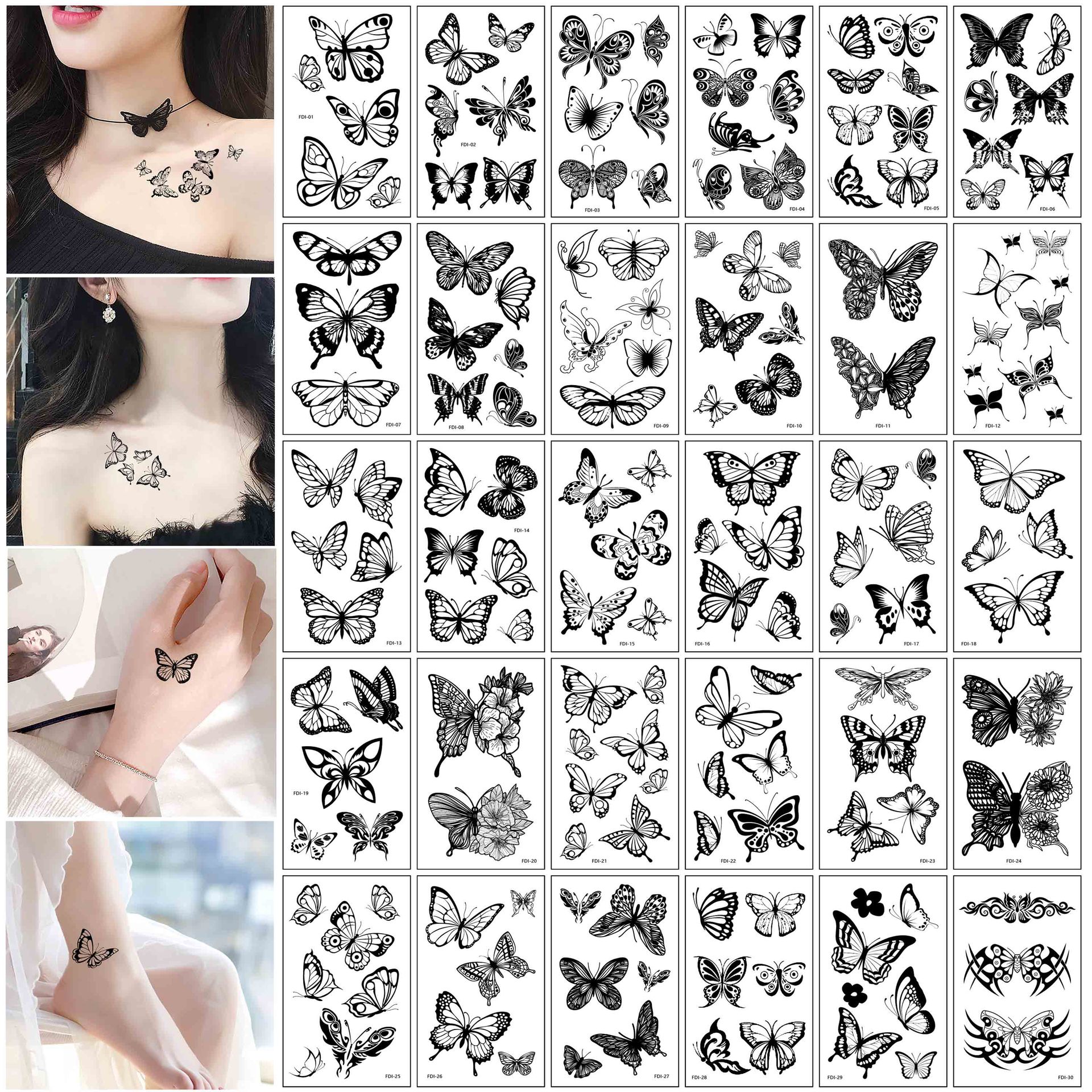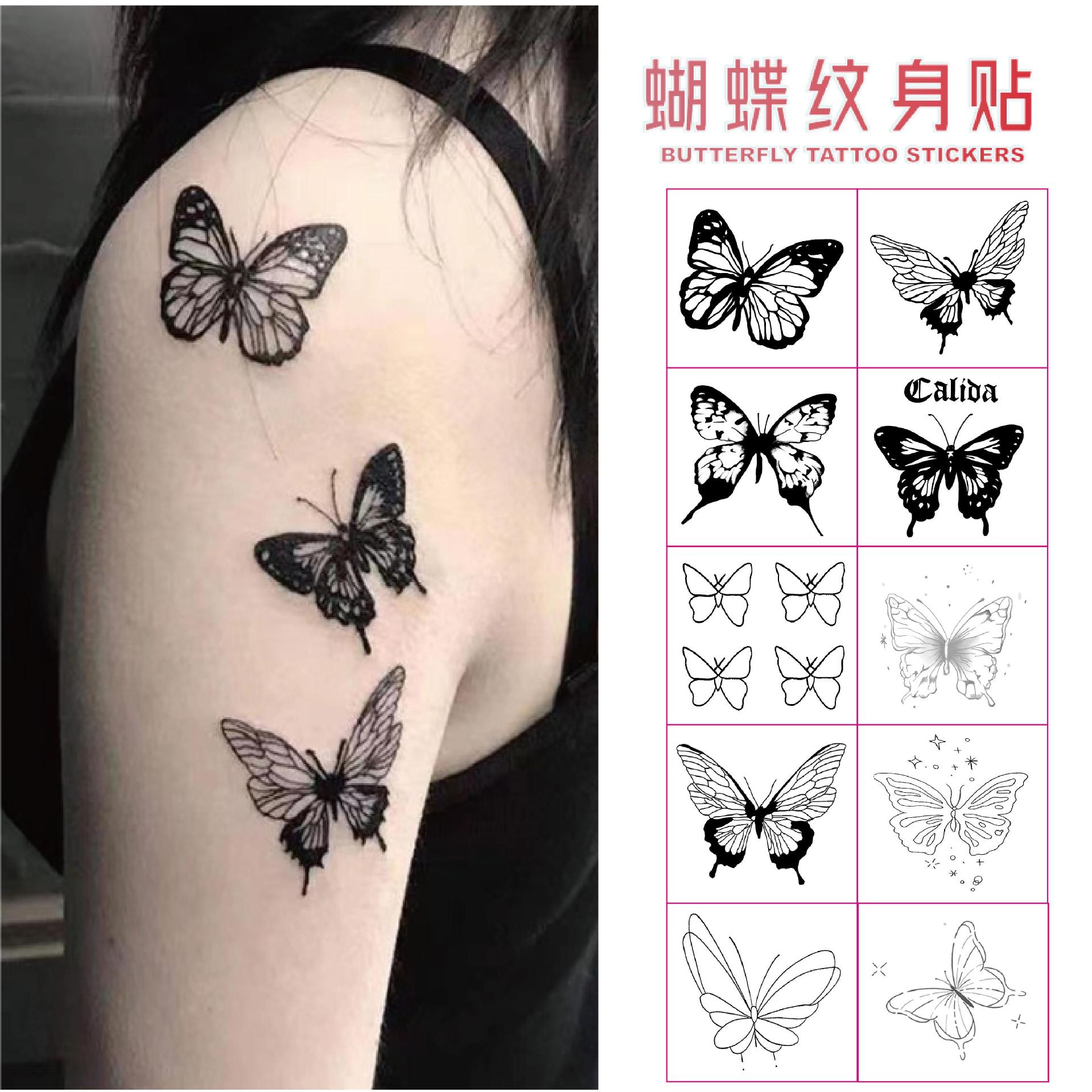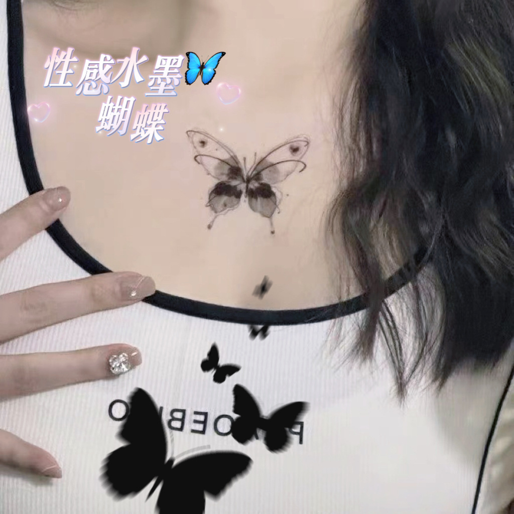 カラー蝶入れ墨ステッカーダークブラックセクシーな女性防水长持ち高级感ins锁骨ステッカー入れ墨ステッカー蝶