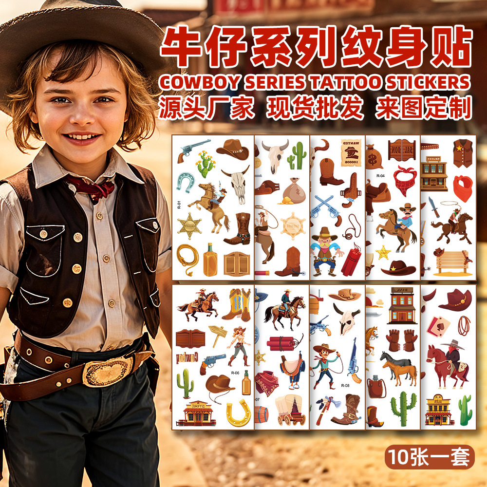 国境を越えた子供のカウボーイタトゥー防水パーティーイベント奨励プレゼント水転写印刷漫画臨時シール
