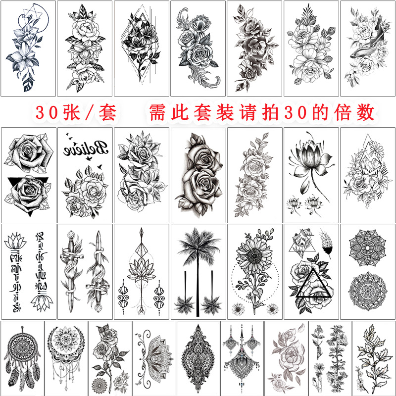 新商品の小清新な刺青は白黒の花の刺青を貼ります。