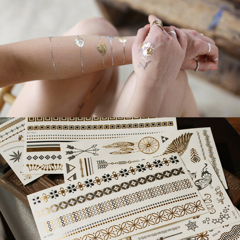 卸売ヨーロッパとアメリカンスタイルのホットスタンピングシルバータトゥーステッカーメタルレトロ携帯電話ステッカーシャイニングブレスレットステッカータトゥー