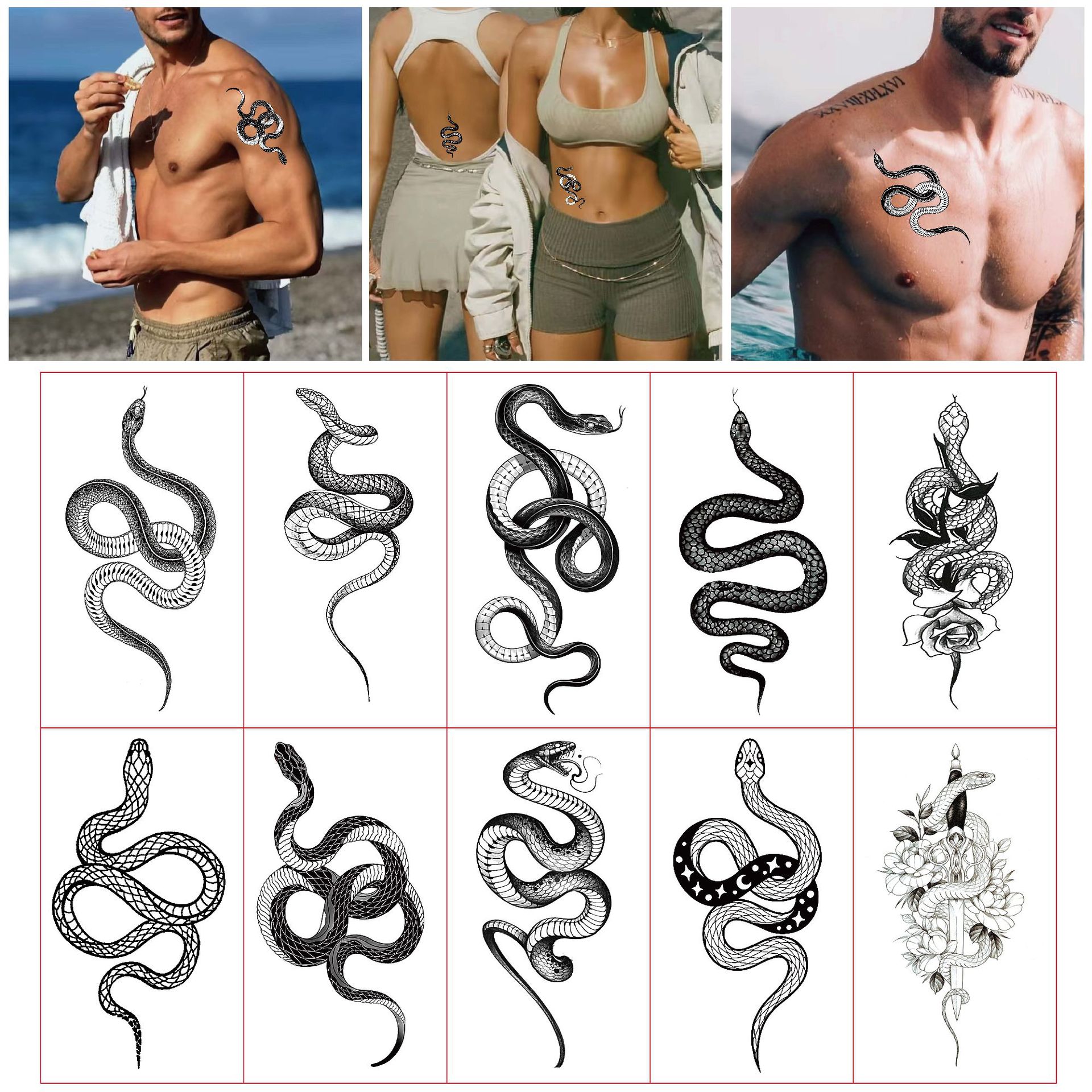 新型の越境蛇の紋章はコブラの蛇の花の蛇の刺青のシールの欧米の刺青のシミュレーションの刺青の防水のシールを貼ります。