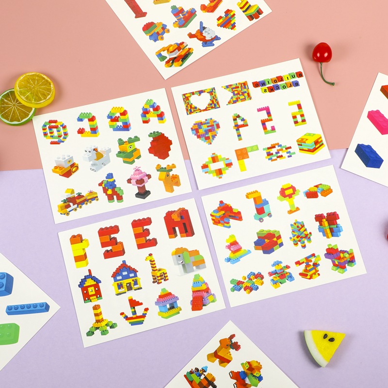 子供用の積み木の紋章を卸売りしてセットのかわいい積み木のシールの顔のシールを貼ります。