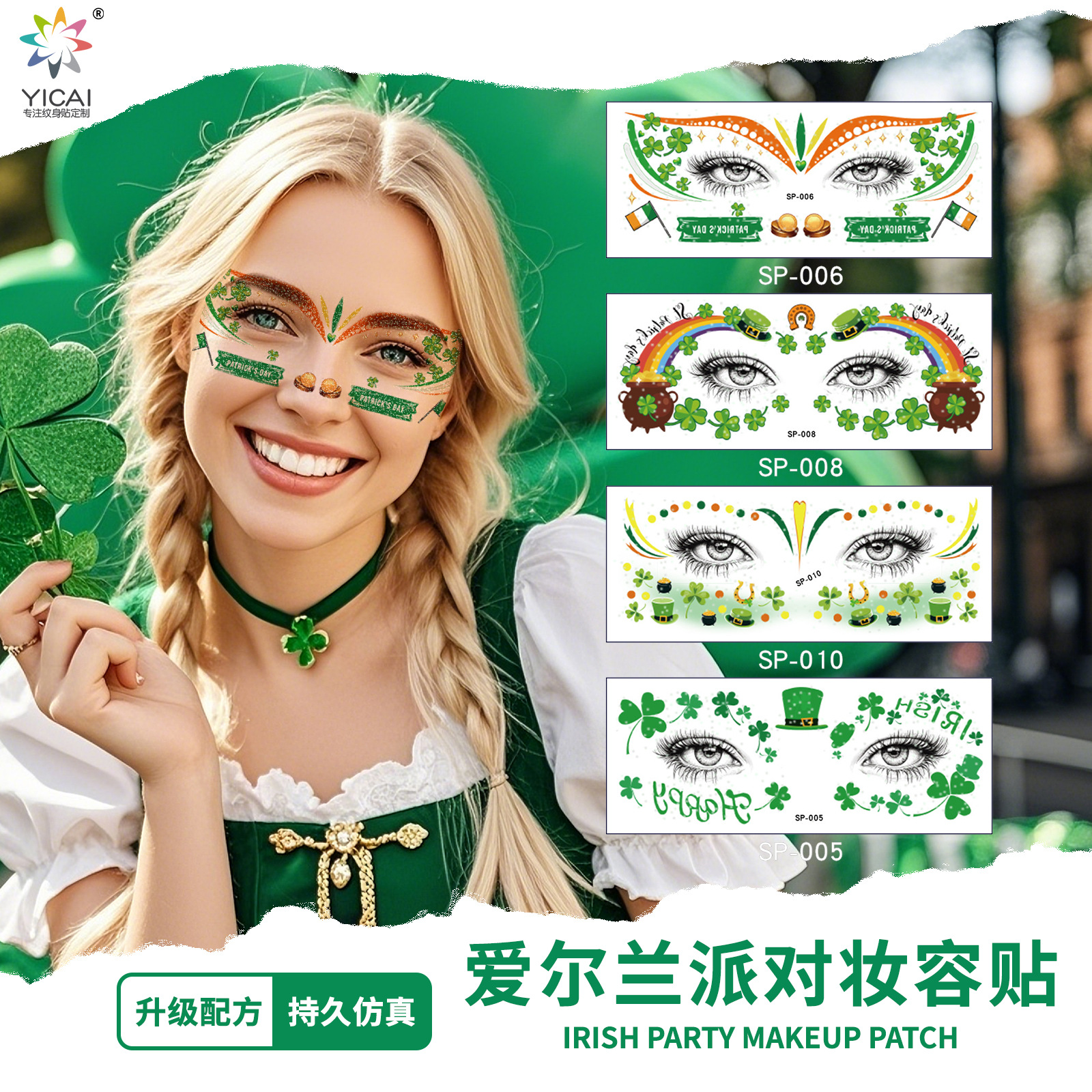 祝日のパーティーの舞台の化粧は顔を貼って化粧のシールを貼ります。