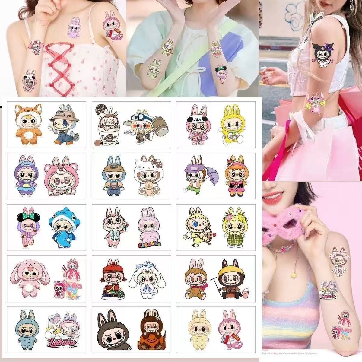 Labubu タトゥーステッカー Labubu ドーパミンかわいい漫画ガールハートクリスマス防水長期的なタトゥーステッカー