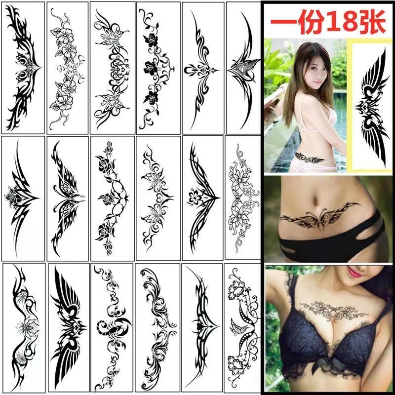 新型の長いトーテムの紋章は腰の花の腹部の腰の傷跡の黒色の経典のセクシーな女性の気質の貼り紙を貼ります。