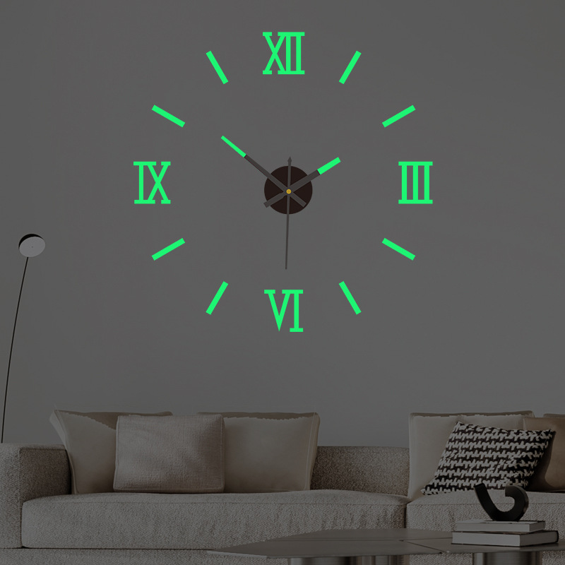 創意的な穴なし夜光diy掛け時計寝室リビングミラー時計静音アクリル装飾壁貼り時計