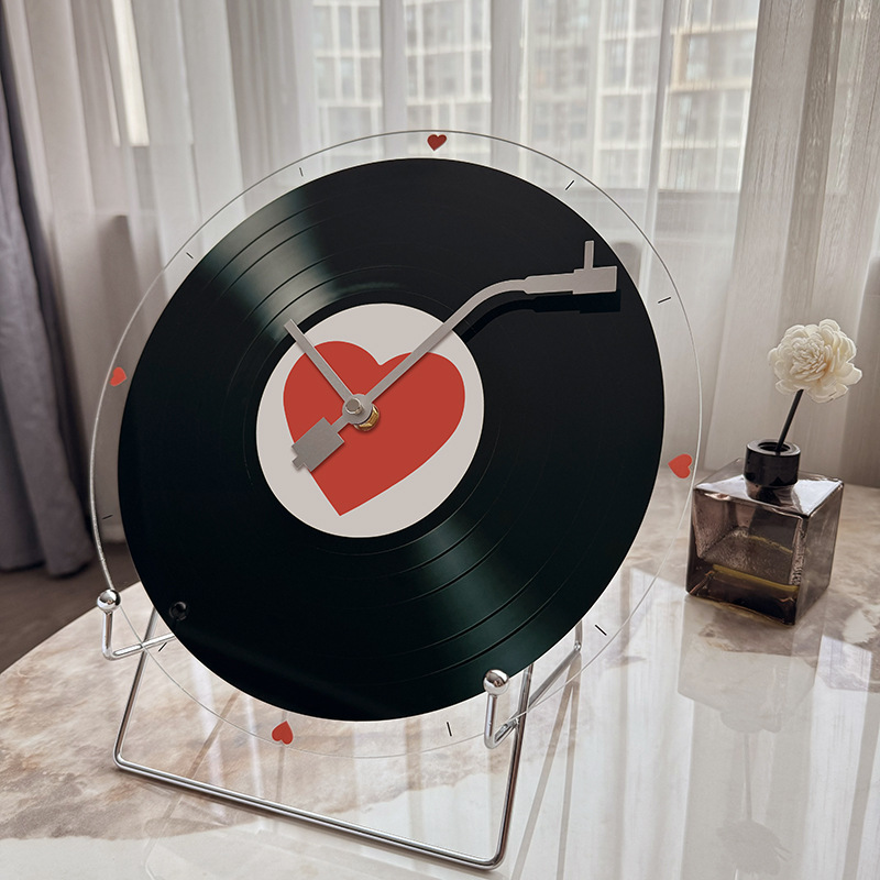 レトロビニールレコード時計サンセット壁時計リビングルームオフィスデスクデスクトップ装飾品ワインキャビネットテレビ壁装飾