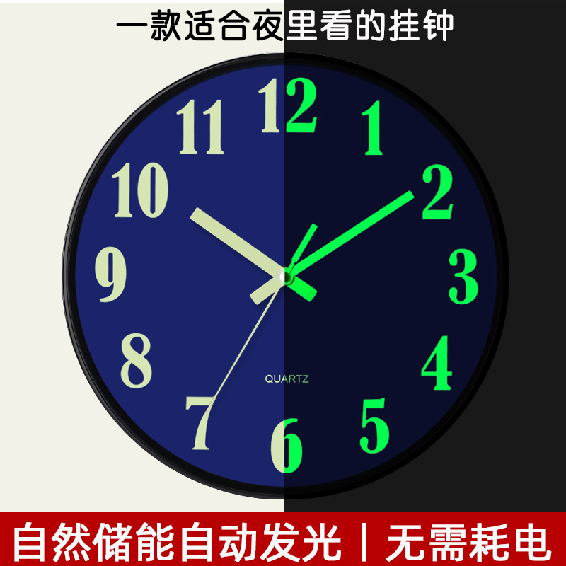 12インチ30cm夜光プラスチック静音掛け時計クリエイティブ寝室リビングルームシンプル発光クォーツ時計卸売