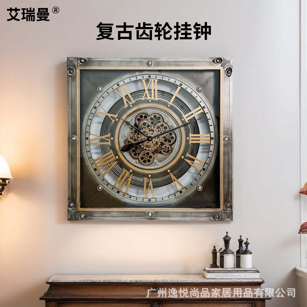 ヨーロッパの金属レトロな歯車壁時計リビングルームの装飾クリエイティブ壁時計パーソナライズされたポインター時計パフォーマンス卸売