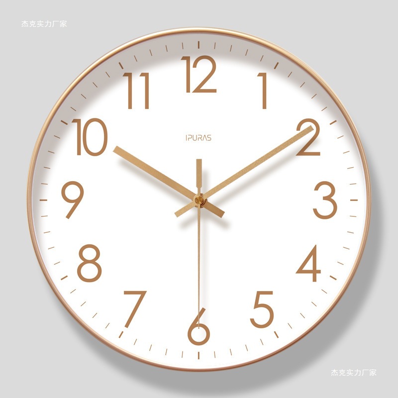 軽豪華金属貝殻客間掛け時計寝室壁掛け時計円形穴なし静音シンプル時計石英時計