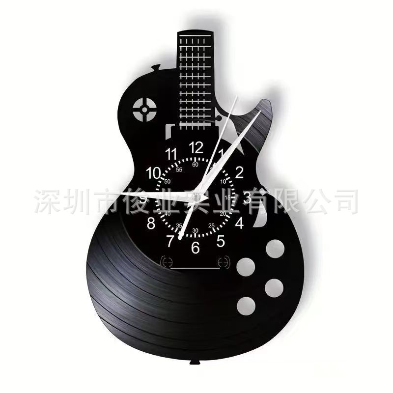 TEMUアマゾンは鏡を越えて爆発的な音楽ギターの黒ゴム時計家が黒ゴムレコードの掛け時計を飾っている