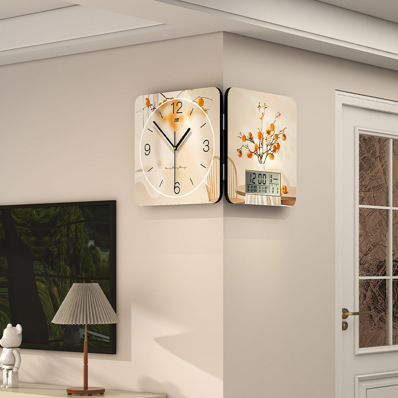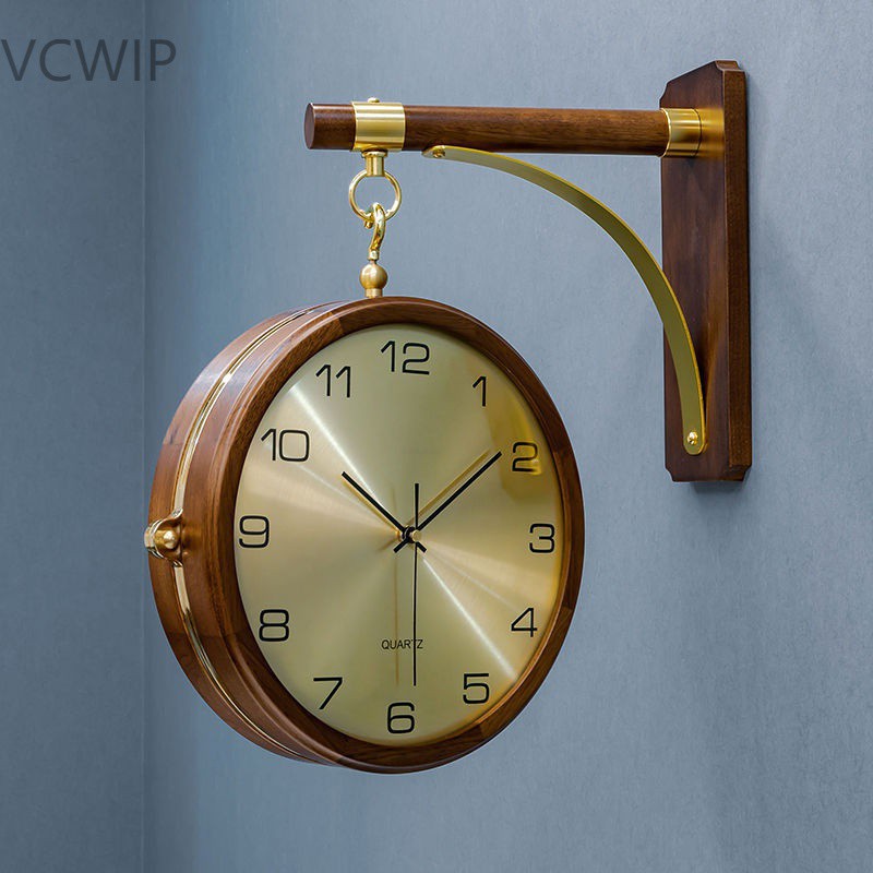 両面回転角時計客間壁掛け時計クリーム中古風レストラン穴なし新年お祝い壁時計高級感