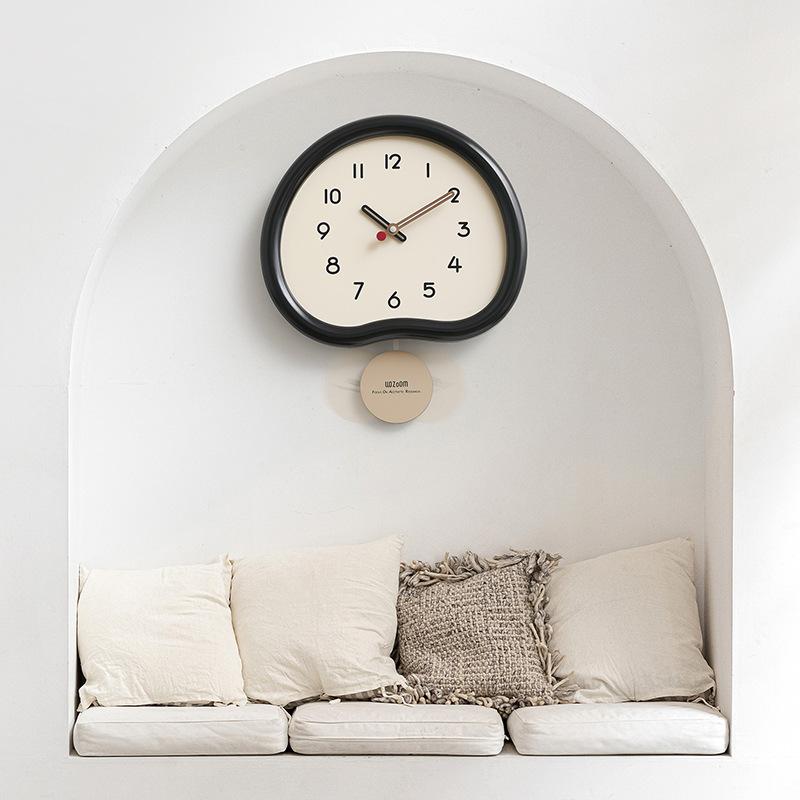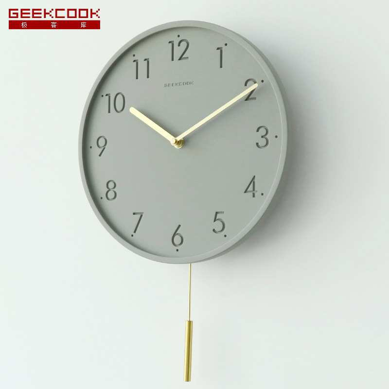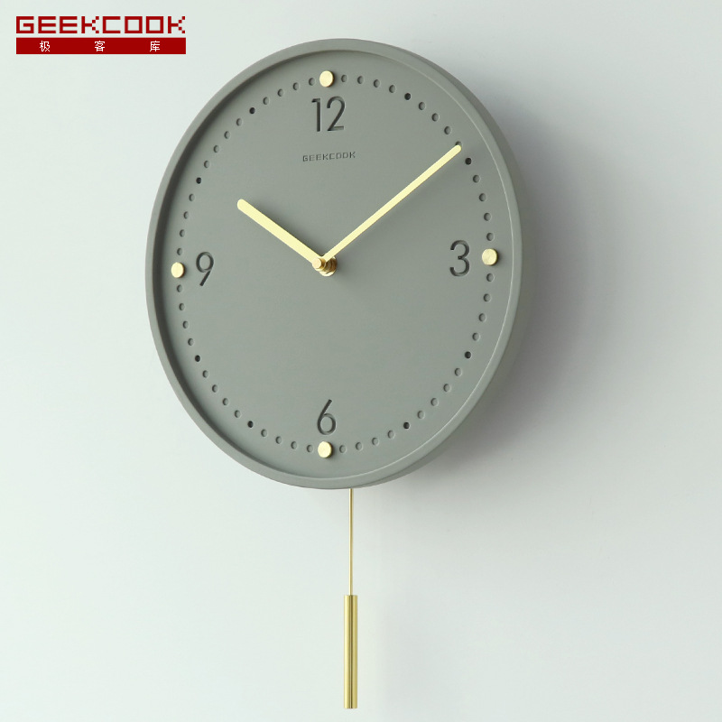 スペイン風ミニマリストリビングルーム壁掛け時計、モダンで軽やかな高級感、静音スイング式時計、静音設計