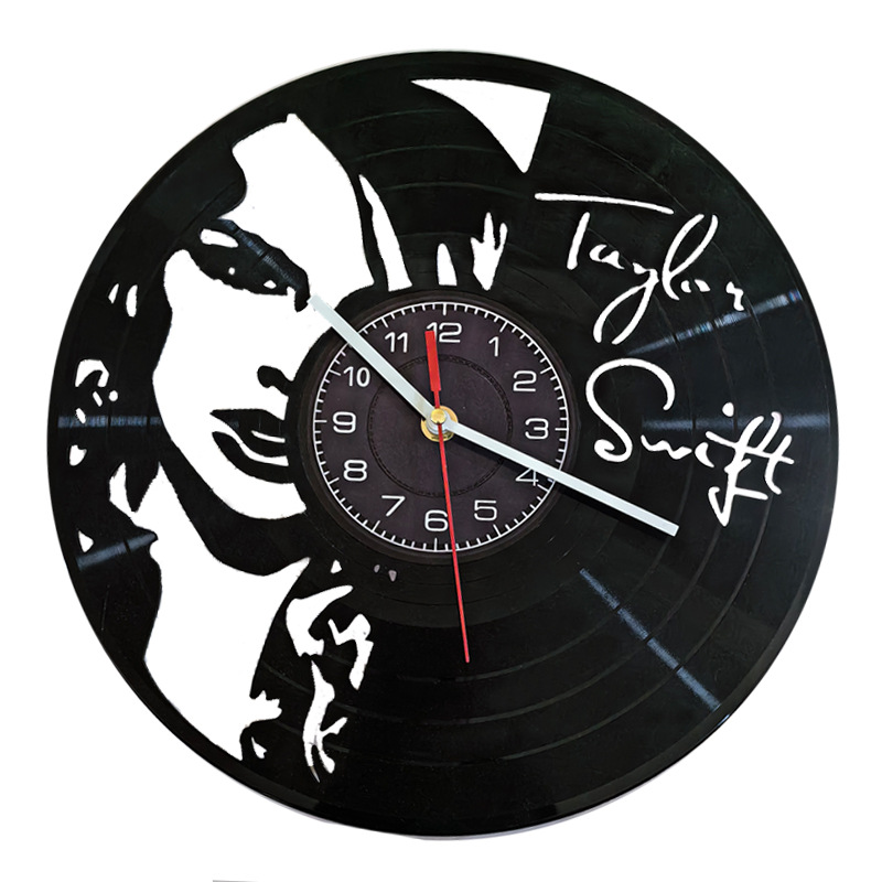 クロスボーダーの黒いゴムのレコードの透かし彫りは時計の少女の創意の時計の客間の装飾の文字板の家庭の復古の掛け時計を掛けます。