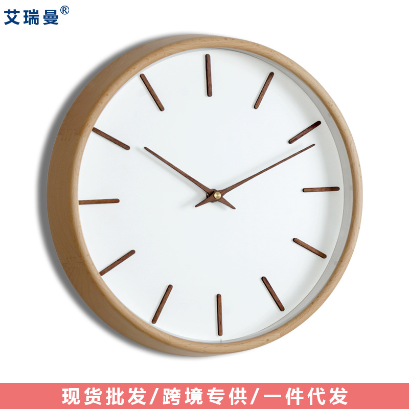 北欧実木掛け時計現代シンプル芸術木製静音時計客間装飾創意指針石英時計