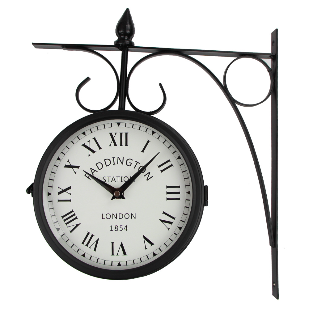 ヨーロッパ式のレトロなアイデアのリビングルームの掛け時計の両面時計の家庭用の簡単な時計は壁の鉄の芸の掛け時計を掛けます。