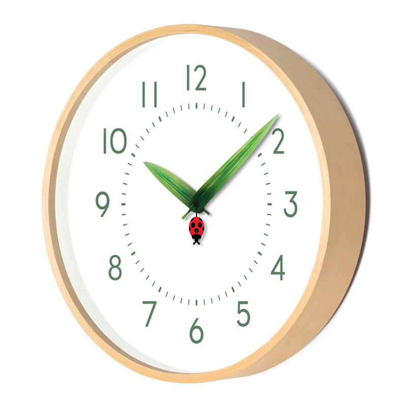 Mjk子供漫画シンプル静音挂け时计学ぶ実木质リビングルーム个性ファッションクリエイティブ家庭用时计